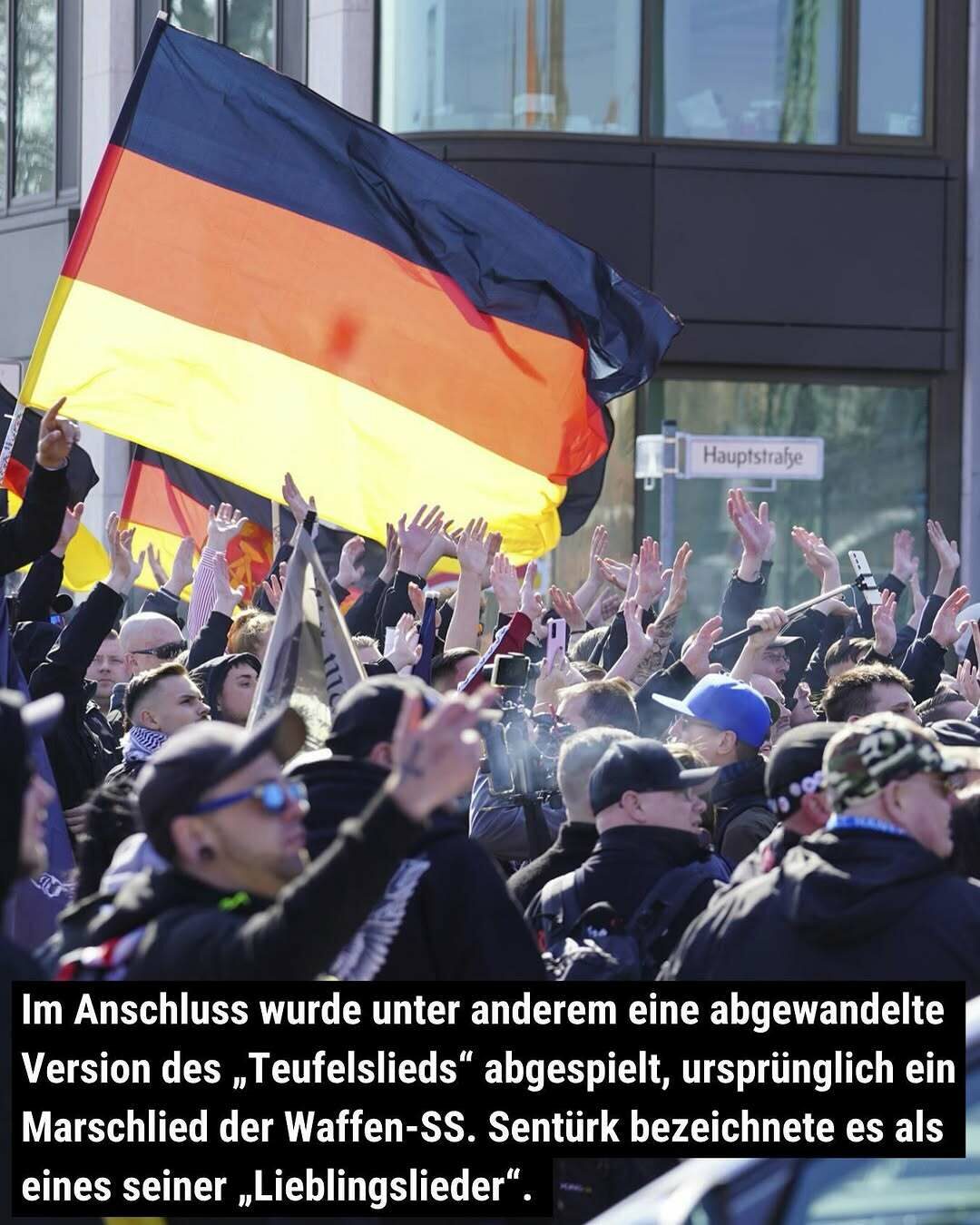 Im Anschluss wurde unter anderem eine abgewandelte Version des „Teufelslieds“ abgespielt, ursprünglich ein Marschlied der Waffen-SS. Sentürk bezeichnete es als eines seiner „Lieblingslieder“.