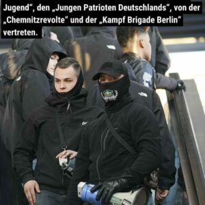 Ähnlich wie bei den letzten Versammlungen traten auch dieses Mal viele junge Neonazi-Gruppierungen in Erscheinung. So waren etwa Teilnehmende der Gruppen „Urbs Turrium“ aus dem Raum Bautzen, von der „Gerschen Jugend“, den „Jungen Patrioten Deutschlands“, von der „Chemnitzrevolte“ und der „Kampf Brigade Berlin“ vertreten.