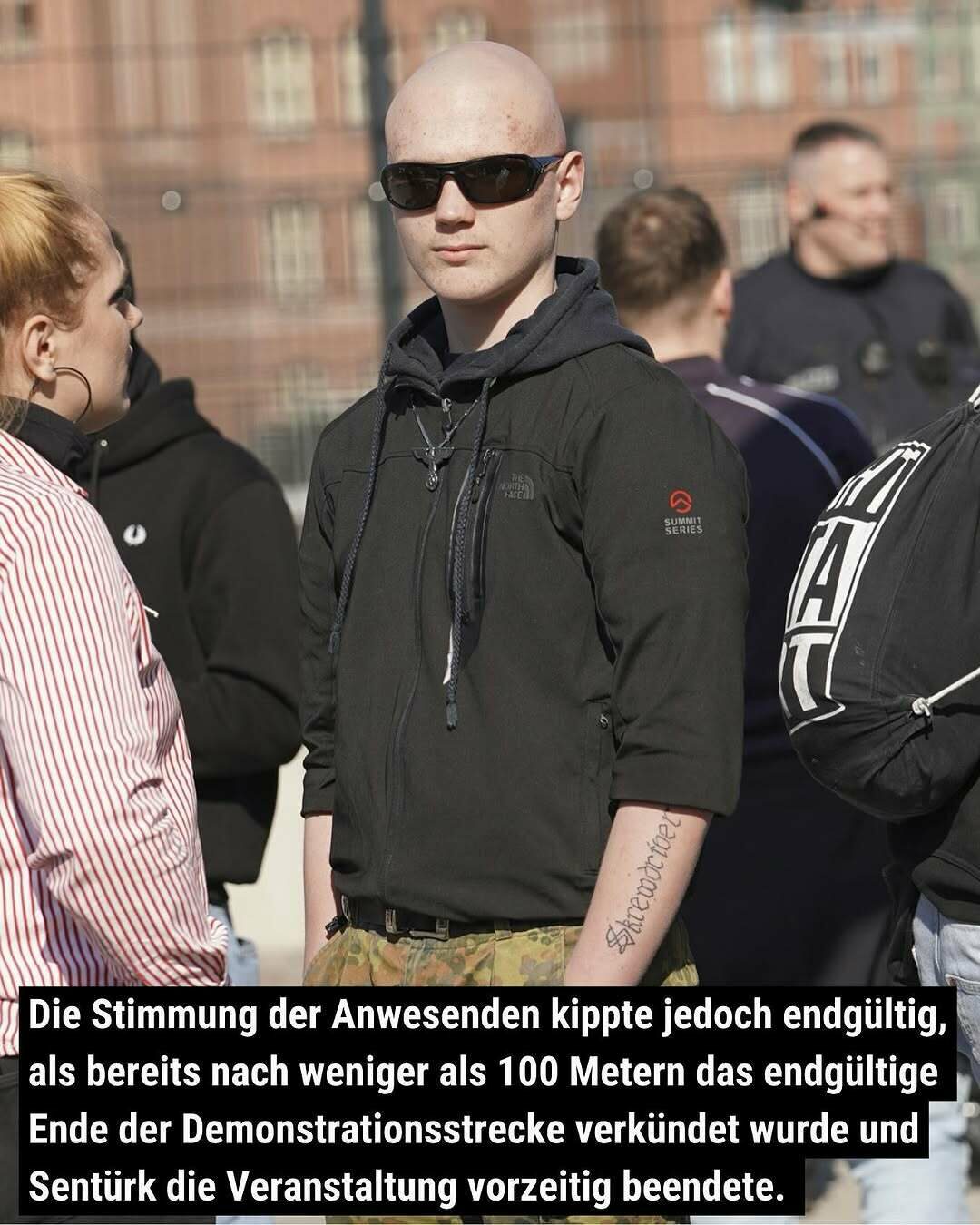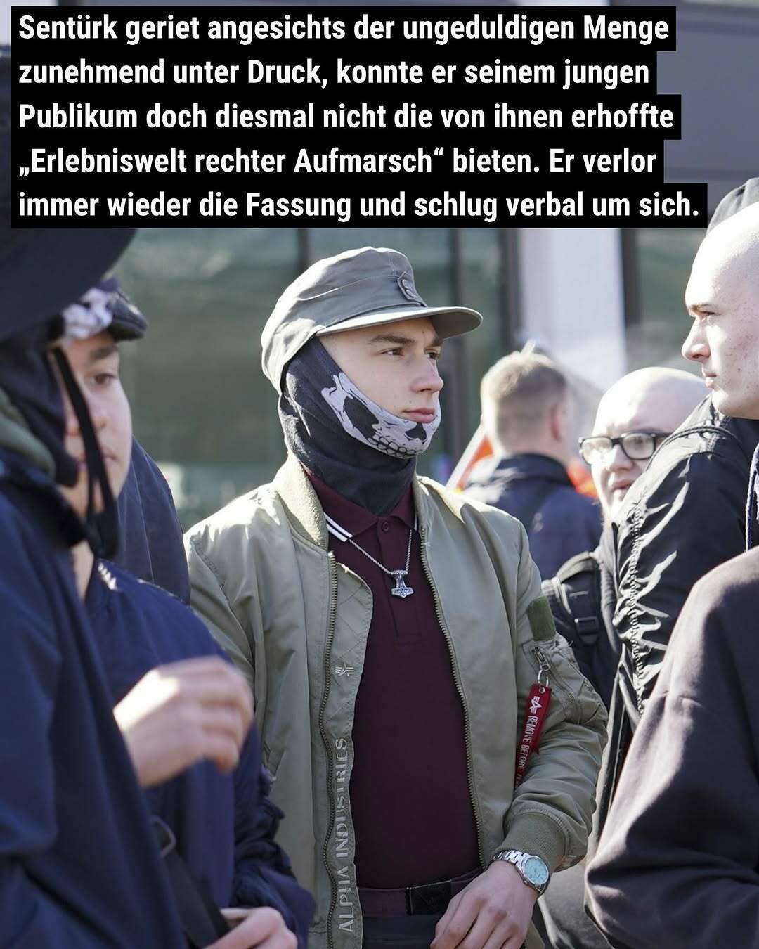 Sentürk geriet angesichts der ungeduldigen Menge zunehmend unter Druck, konnte er seinem jungen Publikum doch diesmal nicht die von ihnen erhoffte „Erlebsniswelt rechter Aufmarsch“ bieten. Er verlor immer wieder die Fassung und schlug verbal um sich.