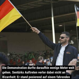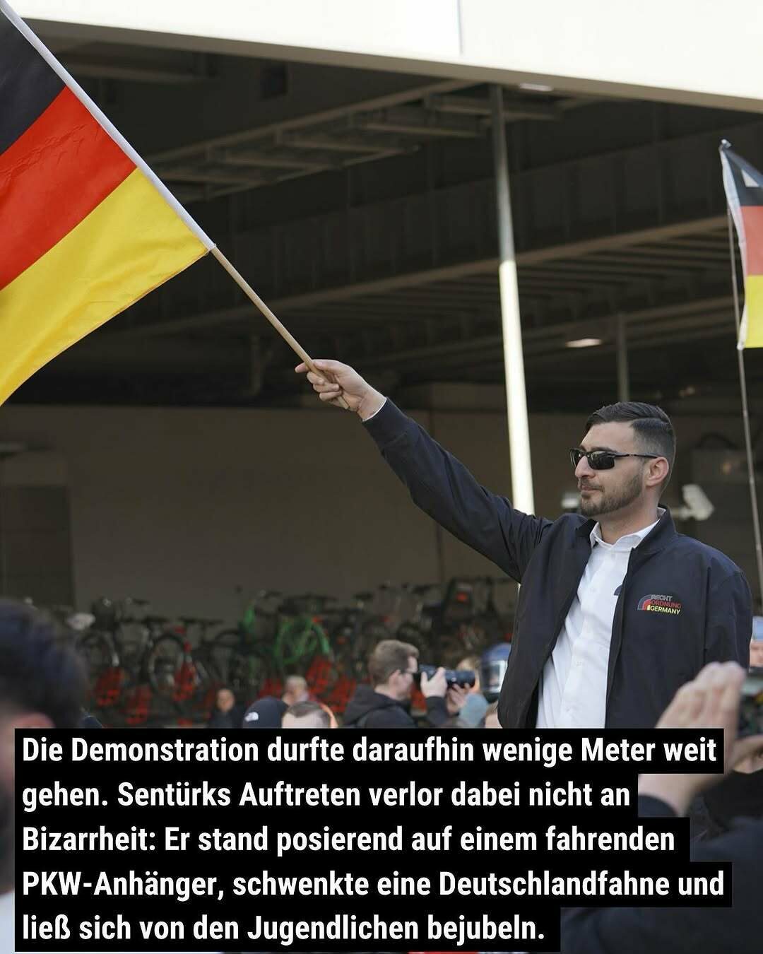 Die Demonstration durfte daraufhin wenige Meter weit gehen. Sentürks Auftreten verlor dabei nicht an Bizarrheit: Er stand posierend auf einem fahrenden PKW-Anhänger, schwenkte eine Deutschlandfahne und ließ sich von den Jugendlichen bejubeln.