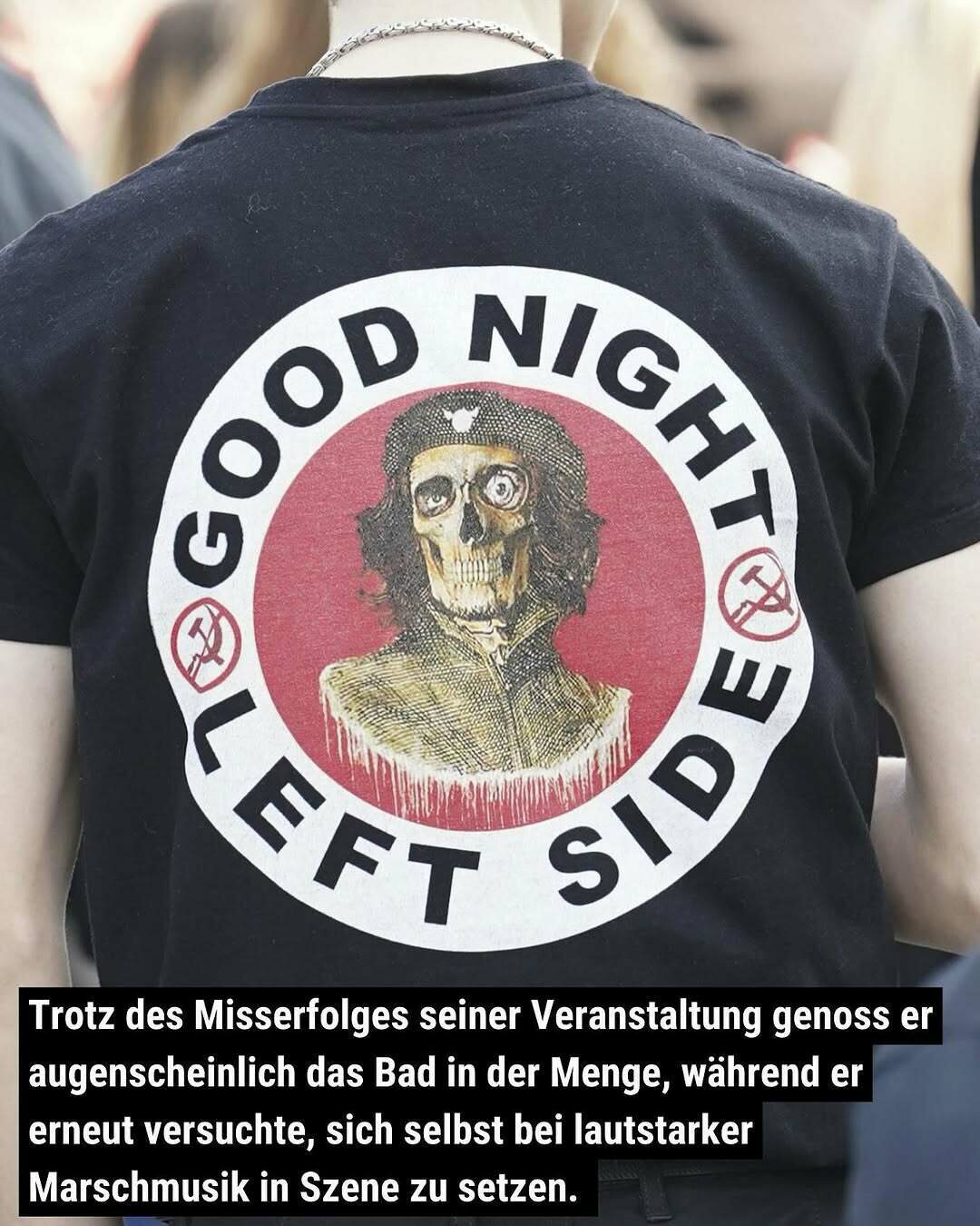 Trotz des Misserfolges seiner veranstaltung genoss er augenscheinlich das Bad in der Menge, während er erneut versuchte, sich selbst bei lautstarker Marschmusik in Szene zu setzen.