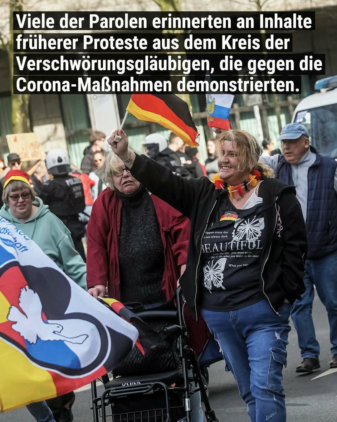 Seit 2021 hetzen sie vor allem gegen die Grünen, auf ihrem Account lässt sich die Rechtsentwicklung schön beobachten. Sie sind auf Instagram sehr aktiv und versuchen, sich mit anderen zu vernetzen. Zum Beispiel erstellten sie zum 22.3. eine deutschlandweite Karte mit allen Demonstrationsorten.