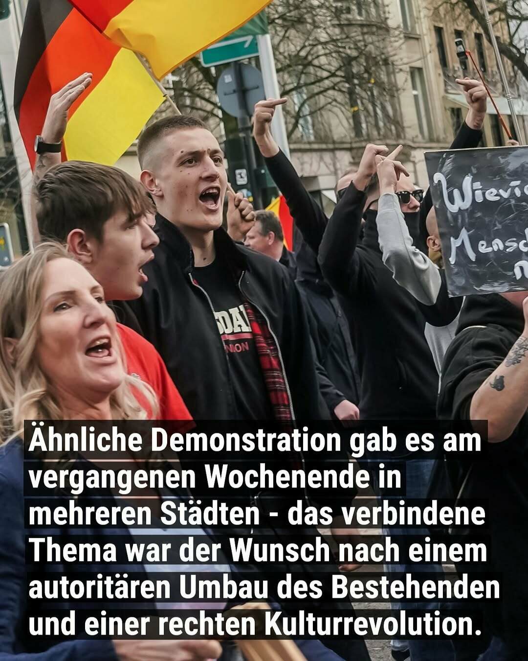 Ähnliche Demonstrationen gab es am vergangenen Wochenende in mehreren Städten – das verbindende Thema war der Wunsch nach einem autoritären Umbau des Bestehenden und einer rechten Kulturrevolution.