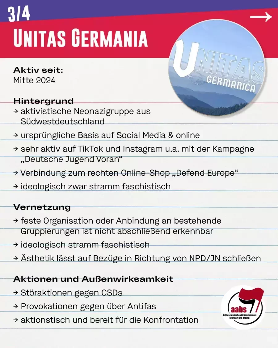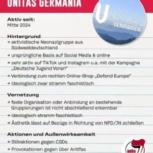 Ursprünglich aus dem Internet heraus entstanden, ist Unitas Germania eine seit Mitte 2024 aktive aktivistische Neonazigruppe aus Südwestdeutschland.