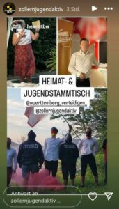 - „Zollern-Jugend aktiv“, mit starken Überschneidungen zu den „Jungen Nationalisten“