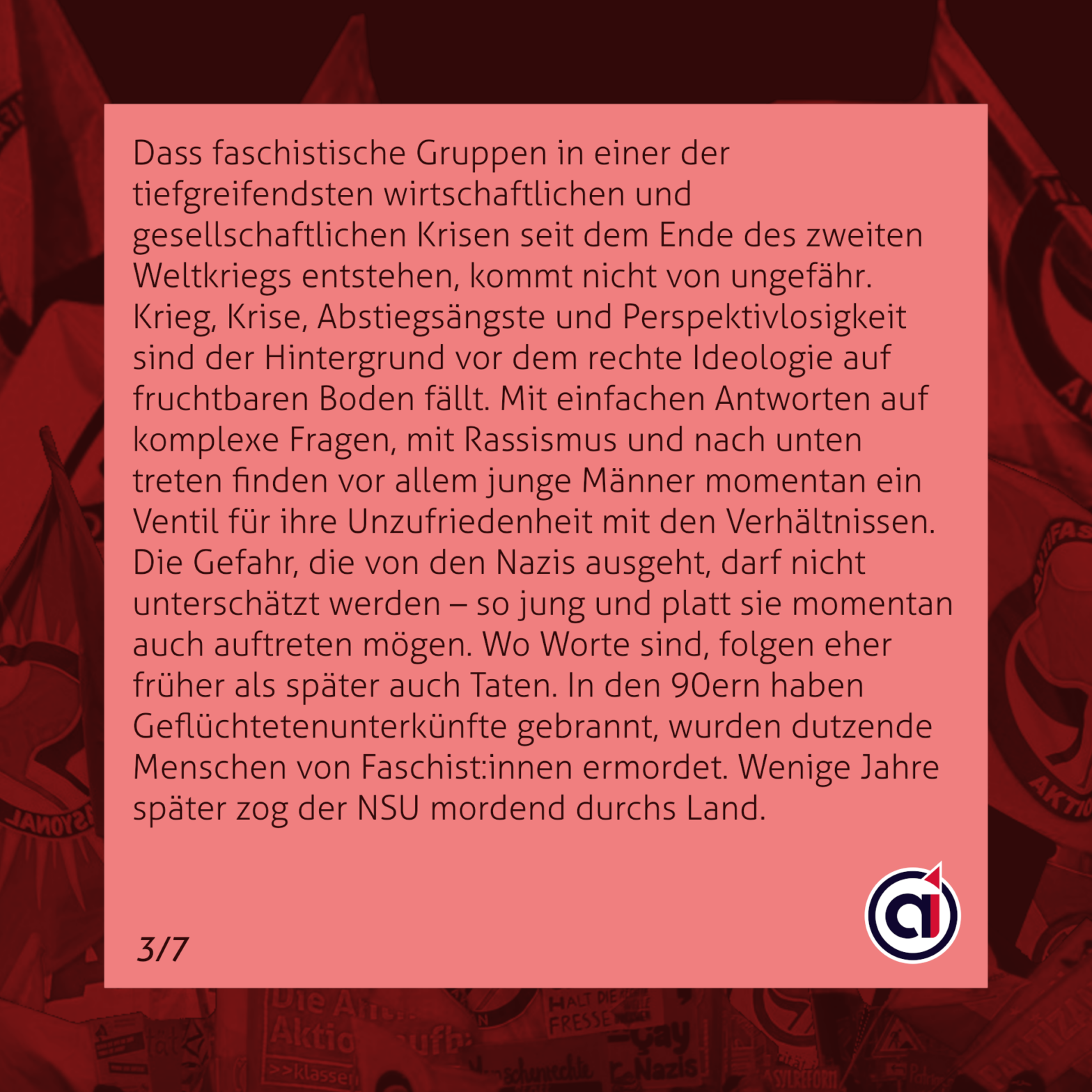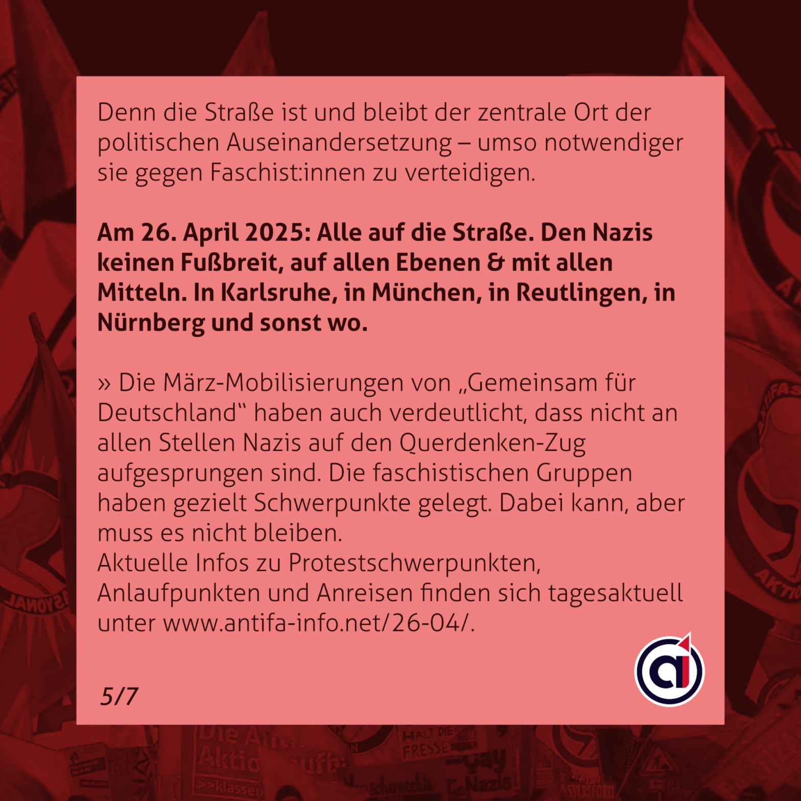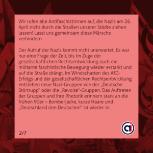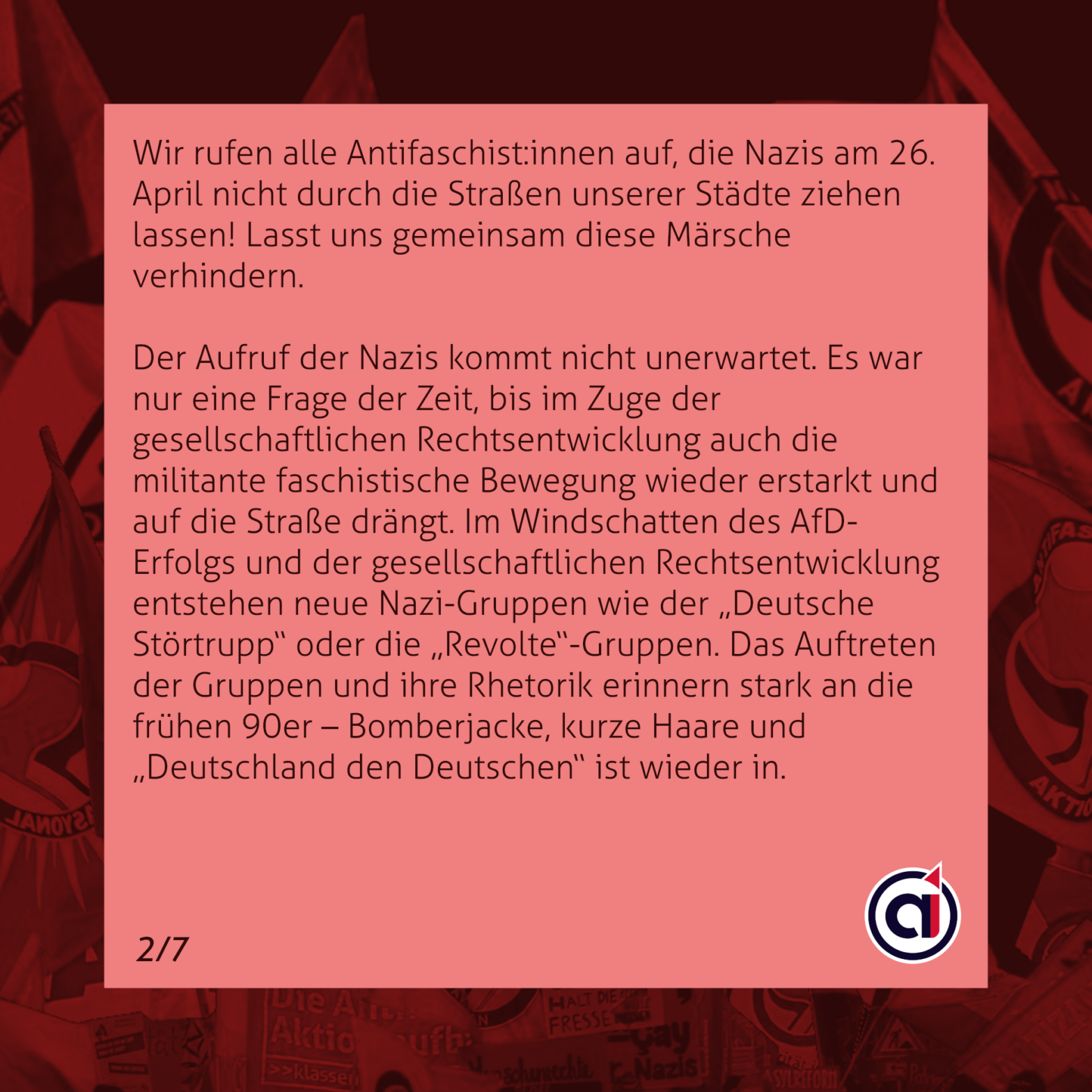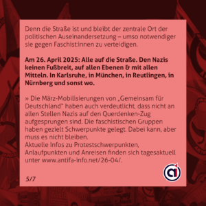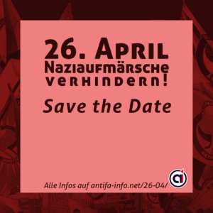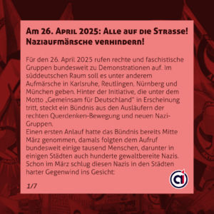 Wir haben einiges an Material für euch zusammengestellt. Neben dem Aufruf als Instagramslides, findet ihr Sharepics für die Gegenveranstaltungen in den verschiedenen Städten, und für eure Anreisen!