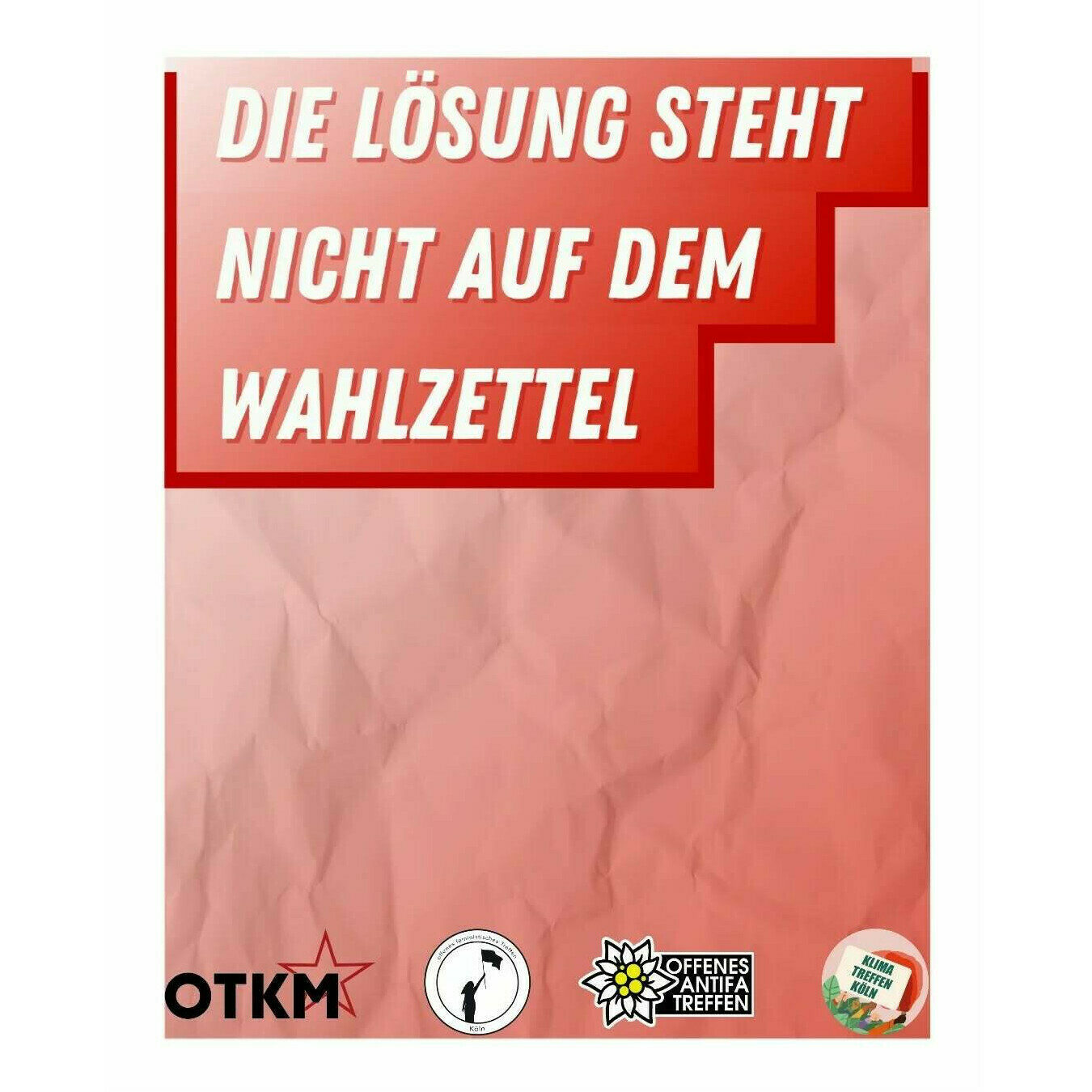 Bündnistexte zur Bundestagswahl ... nicht mit uns! TU WAS! Rechte Pläne durchkreuzen Gegen die Politik der Rechten und Reichen! Die Lösung steht nicht auf dem Wahlzettel Unsere Wahl: Solidarität Beiträge