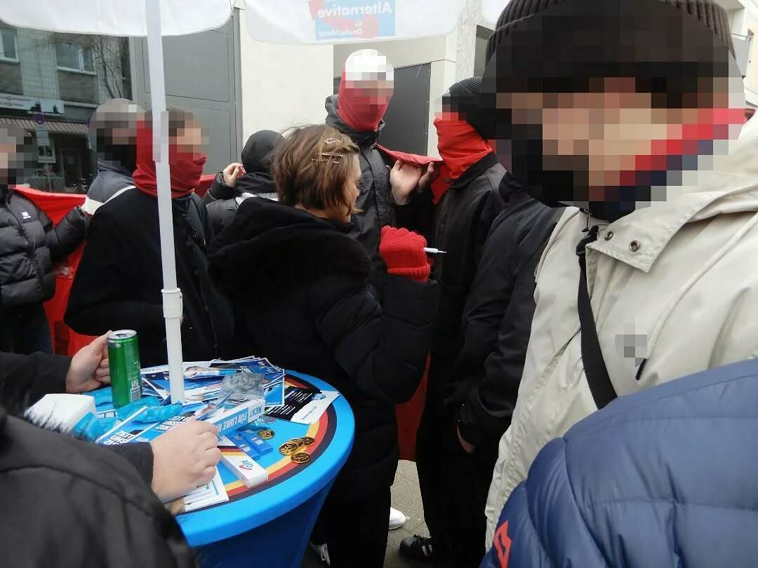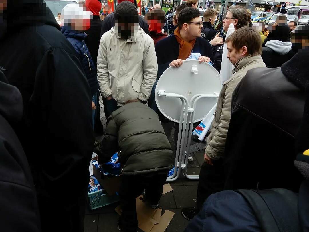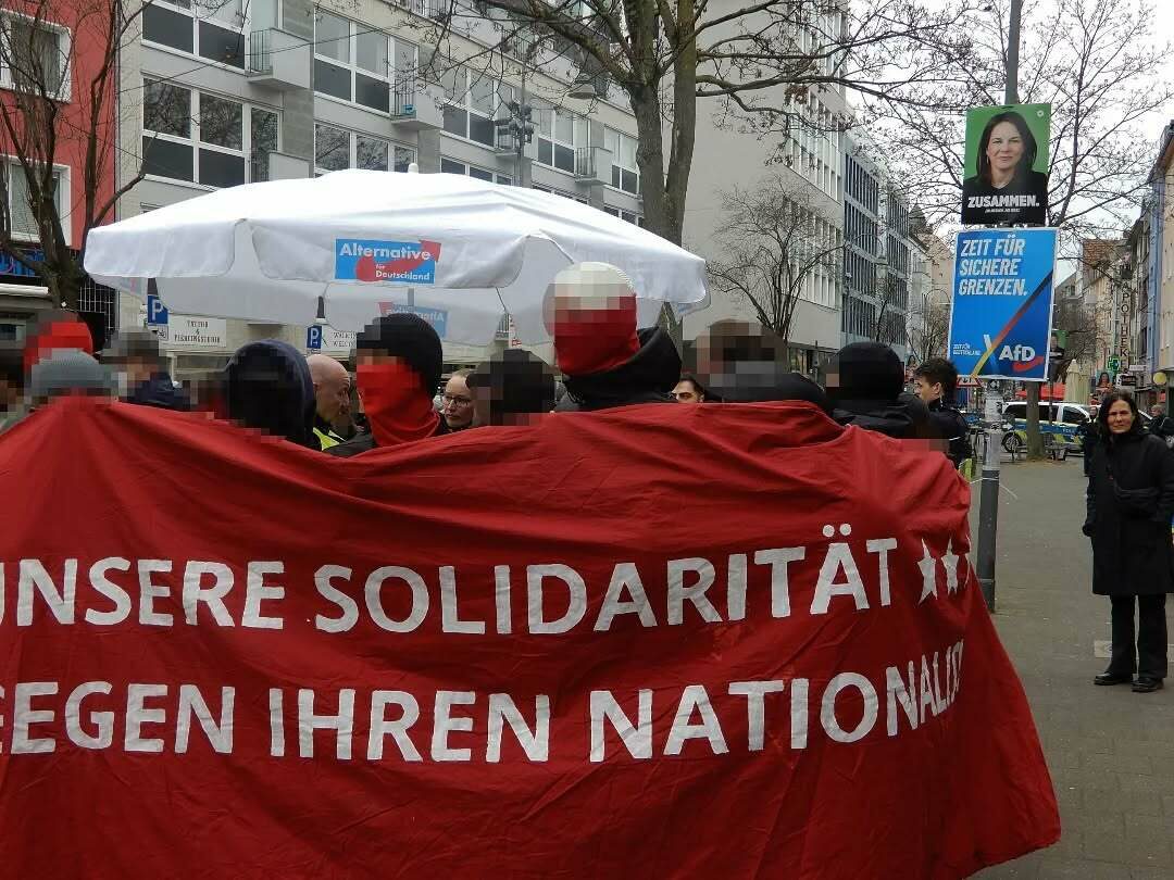 Wir haben heute morgen gemeinsam mit 25 Leuten einen AfD-Stand am Wiener Platz in Mülheim und anschliessend in Deutz blockiert.