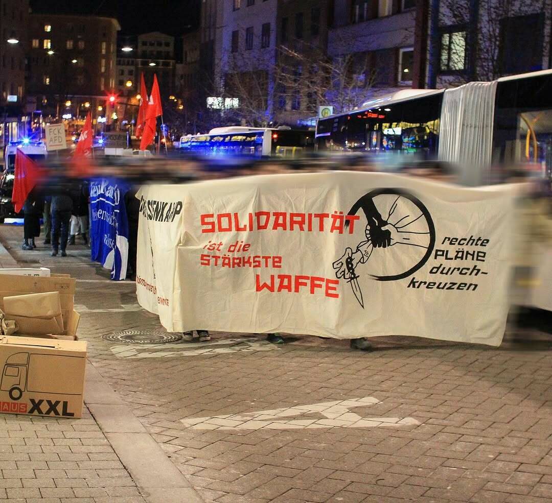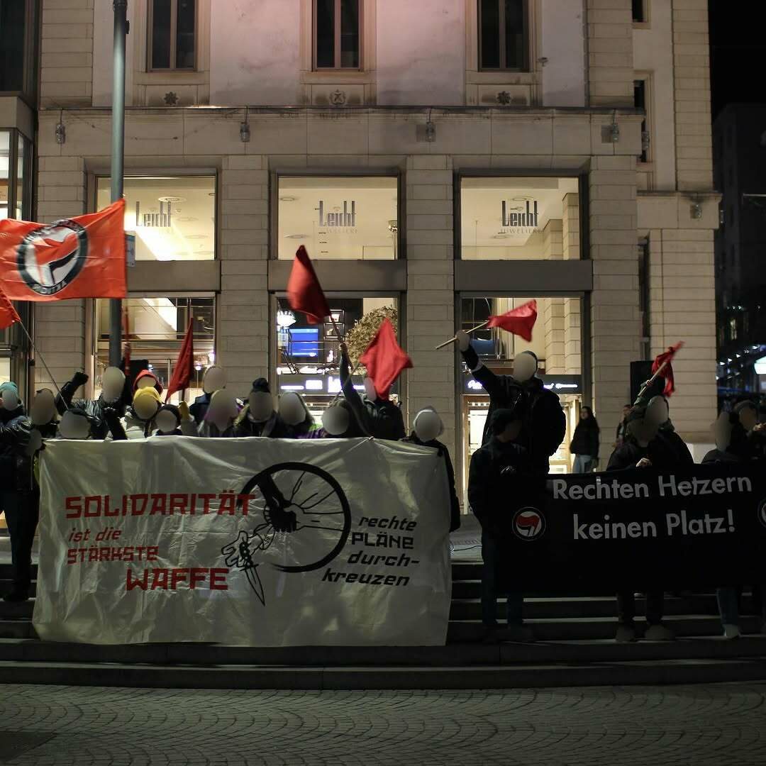 Wir haben lautstark gegen die AfD und ihre Gäste demonstrieren können! Zum Schluss konnten wir mit einer Sponti den Abend mit einem kämpferischen Ausdruck beenden! ✊🚩