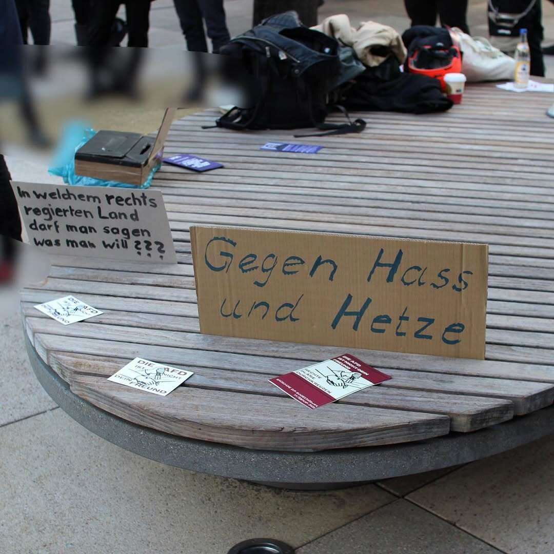 Heute waren wir zahlreich 4 Stunden in der Innenstadt um gegen einen AfD Infostand zu demonstrieren.