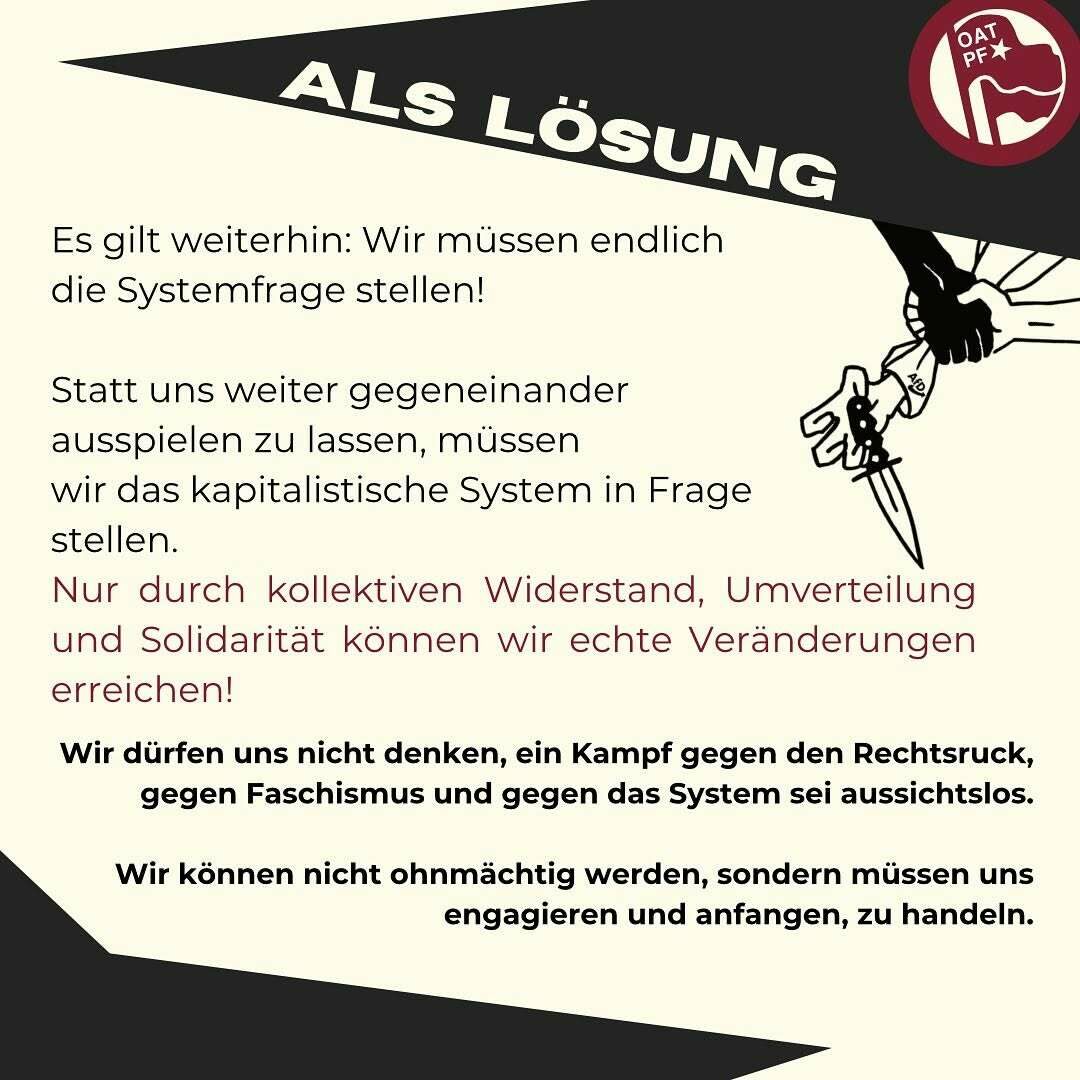 Wir dürfen uns nicht denken, ein Kampf gegen den Rechtsruck, gegen Faschismus und gegen das System sei aussichtslos.