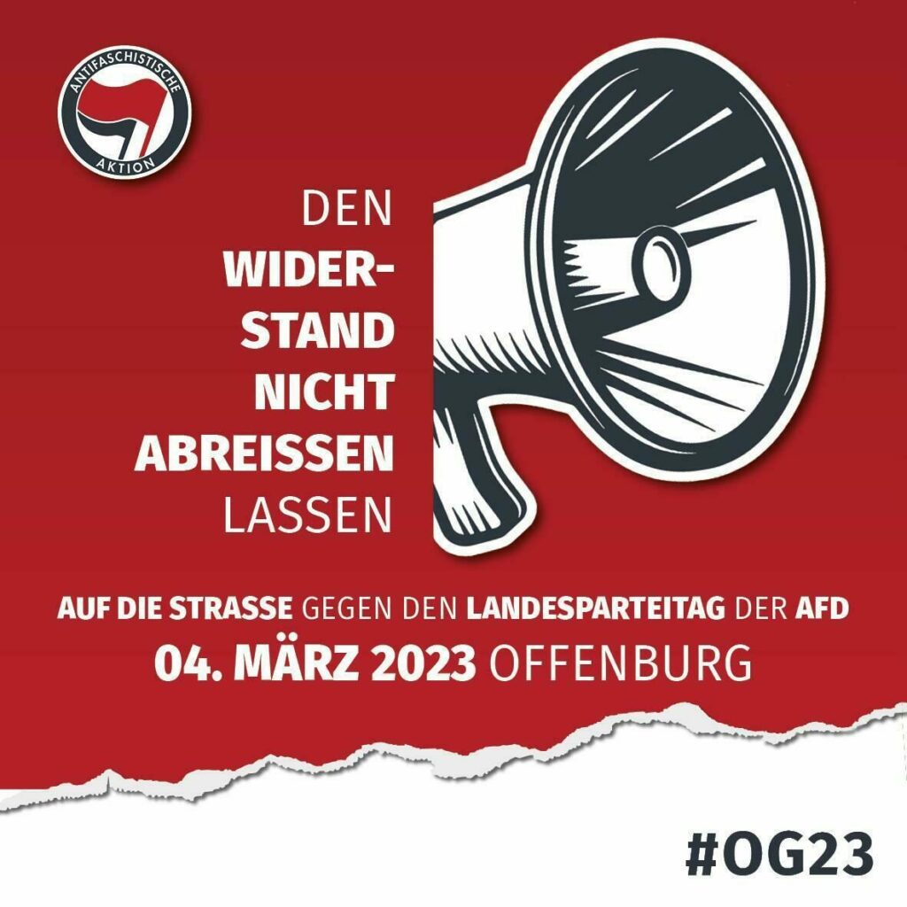 Kommt alle nach Offenburg zu den Protesten gegen den AfD-Landesparteitag und informiert euch hier auf der Kampagnen-Seite.