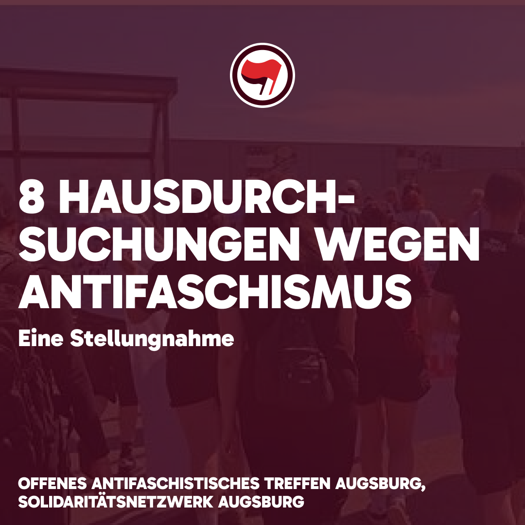 Mittwoch Morgen kam es zu Hausdurchsuchungen bei zwei unserer Genoss*innen. Betroffen waren die Wohnung eines Genossen sowie die Wohnungen beider Eltern einer Genossin. Im Fokus der Ermittlungen stand antifaschistischer Widerstand. So wirft der Staatsschutz den beiden Genoss*innen vor, an den Outings der beiden AfDler Philip Peter Pazmany und Philipp Knothe beteiligt gewesen zu sein. Wie die Augsburger Allgemeine berichtete, wurden diese vor etwa zwei Monaten in ihrer Nachbarschaft geoutet, ihre Wohnungen und ein Auto mit gesprühten Parolen markiert und ihre Briefkästen mit Bauschaum gefüllt. Wie üblich ging der Augsburger Staatsschutz sehr motiviert an die Sache ran und stand schon um fünf Uhr morgens vor der ersten Haustür, begründet mit „Gefahr […]