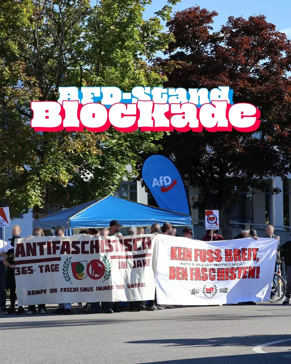 Gestern versammelten wir uns gemeinsam mit Antifaschist*innen aus Augsburg Stadt und Land, um den AfD-Stand in Königsbrunn zu blockieren. Trotz eines immer größer werdenden Polizeiaufgebots hielten wir die Blockade mit Bannern, Schildern, lauten Parolen und einem Redebeitrag fast zwei Stunden aufrecht. Damit haben wir unser Ziel erreicht und die Versammlung selbstbestimmt aufgelöst. Trotzdem wurden wir aufgrund lächerlicher Tatbestände festgehalten, um unsere Personalien aufnehmen zu können. Damit haben wir ein klares Zeichen gegen die menschenfeindliche Politik der AfD gesetzt. Wir stehen für eine Politik, die frei von Kapitalinteressen handelt, statt diese mit Rassismus und rechter Hetze zu rechtfertigen. Das zeigt erneut: Im Kampf gegen Rechts kann man sich nicht auf den […]