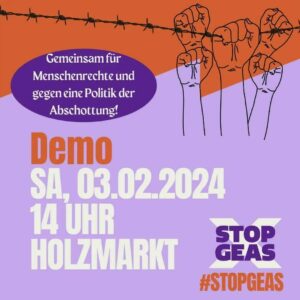 Kommt am 03.02. ab 14Uhr auf den Holzmarkt zur Demonstration! Wir sagen: „Stoppt GEAS, Asylrecht ist Menschenrecht!“