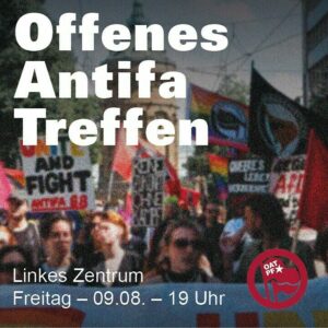 Wann? Am 9. August 2024 um 19:00 Uhr Wo? Linkes Zentrum (Kronprinzenstraße 46)