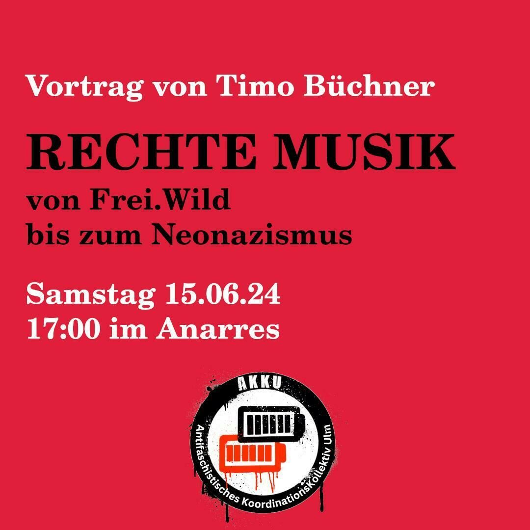 Was in der Debatte in Ulm oft keinen Platz hat sind geheime Neonazi Konzerte in der Gegend oder die tatsächlichen Inhalte der kritisierten Bands. Deswegen haben wir Timo Büchner mit einem Vortrag zu rechter Musik von Frei.Wild bis zum Neonazismus eingeladen.