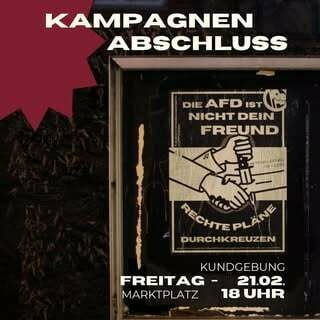 Die AfD und andere rechte Parteien entlarven, über ihre gefährliche Ideologie informieren und linke Alternativen sichtbar machen. Wir werden das Stadtbild prägen und dafür sorgen, dass ihr Wahlkampf nicht ohne Widerspruch bleibt!