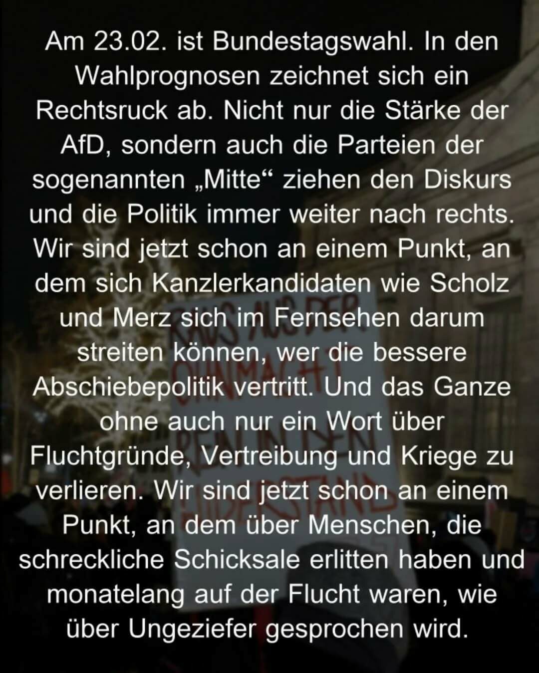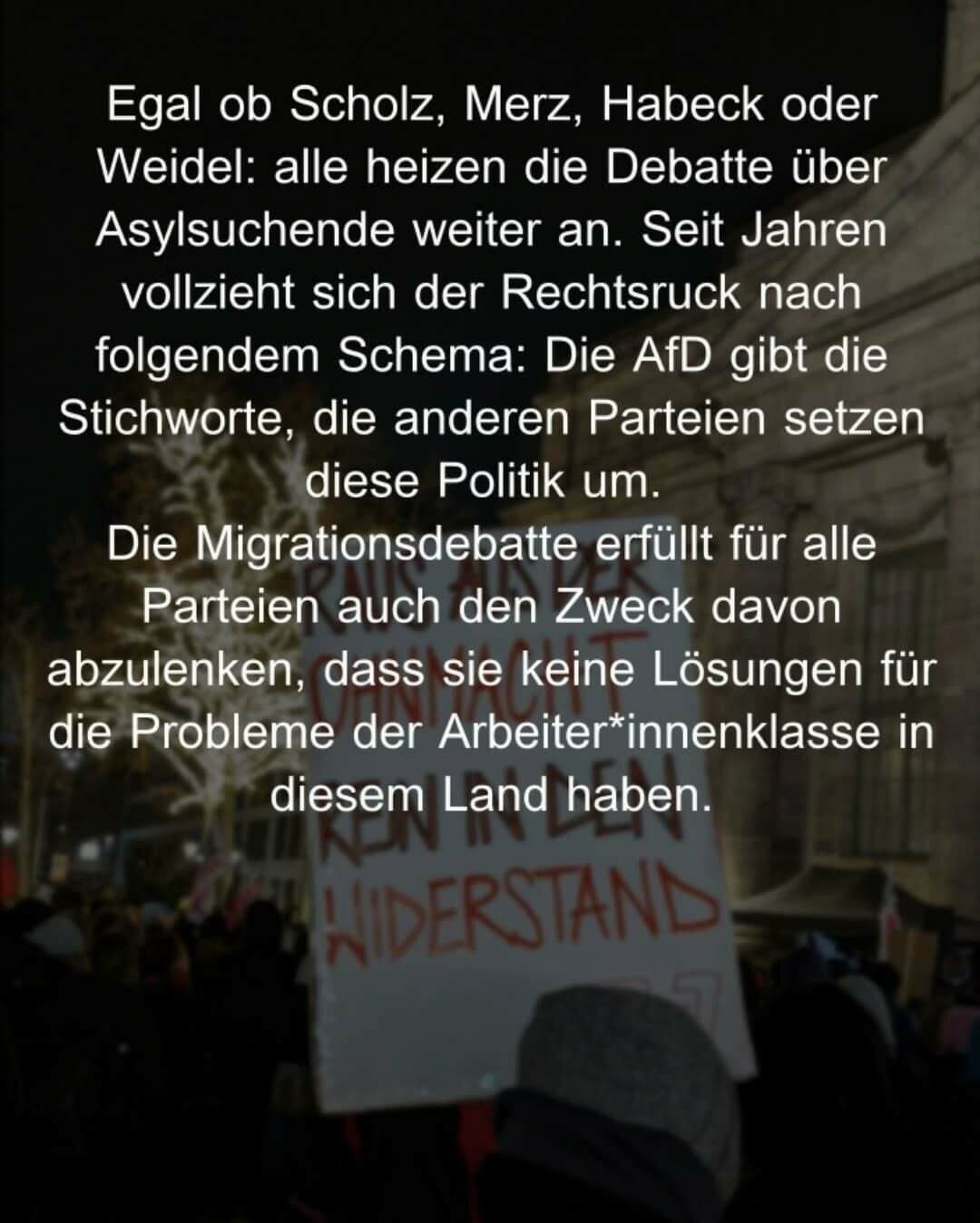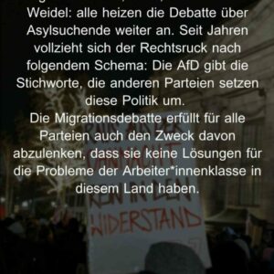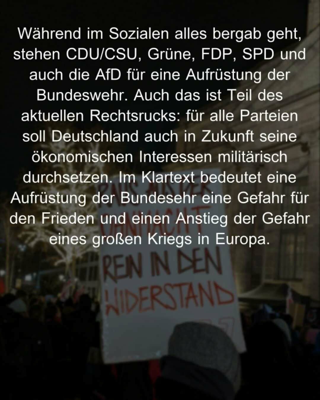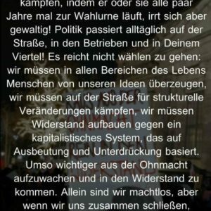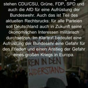 Am Montag auf die Straße – unsere Wahl: Antifa! Kommt mit uns und lasst die Ohnmacht hinter euch, die man angesichts des Rechtsrucks spürt. Kommen wir zusammen in Aktion, leben wir den Widerstand!