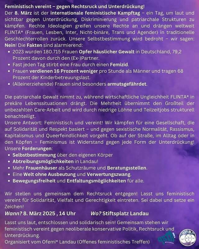 Organisiert vom Ofemi* Landau (Offenes feministisches Treffen)