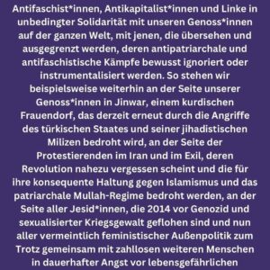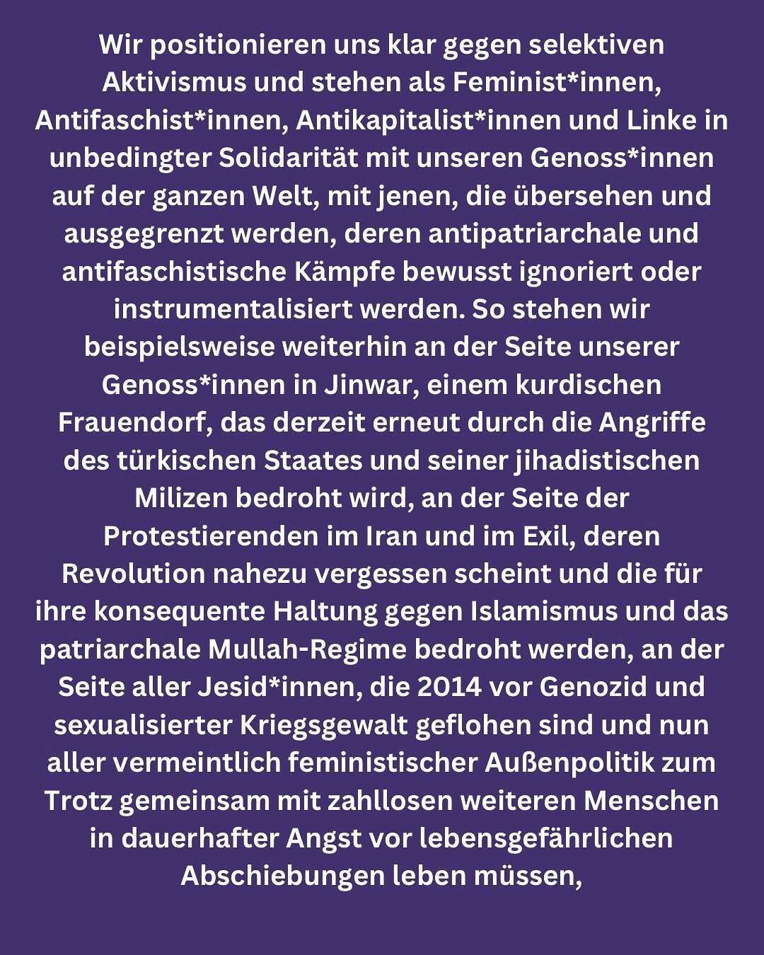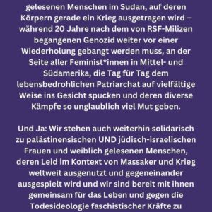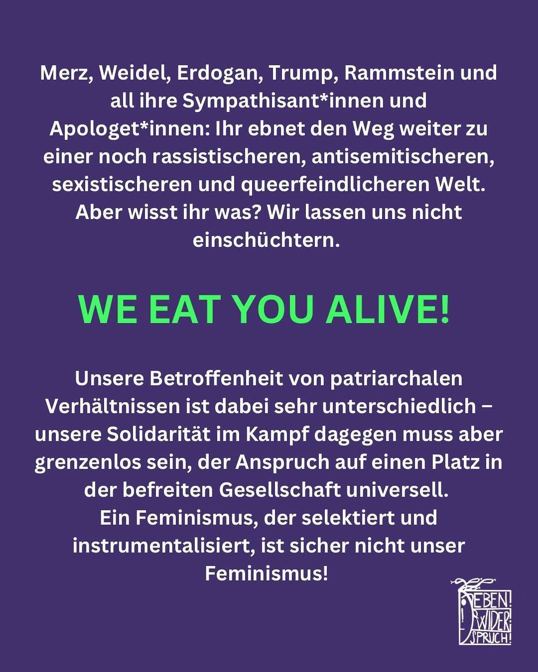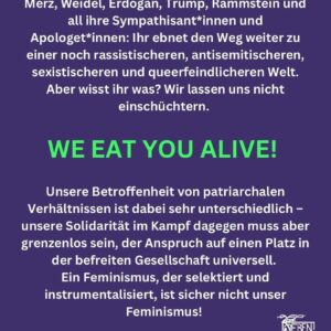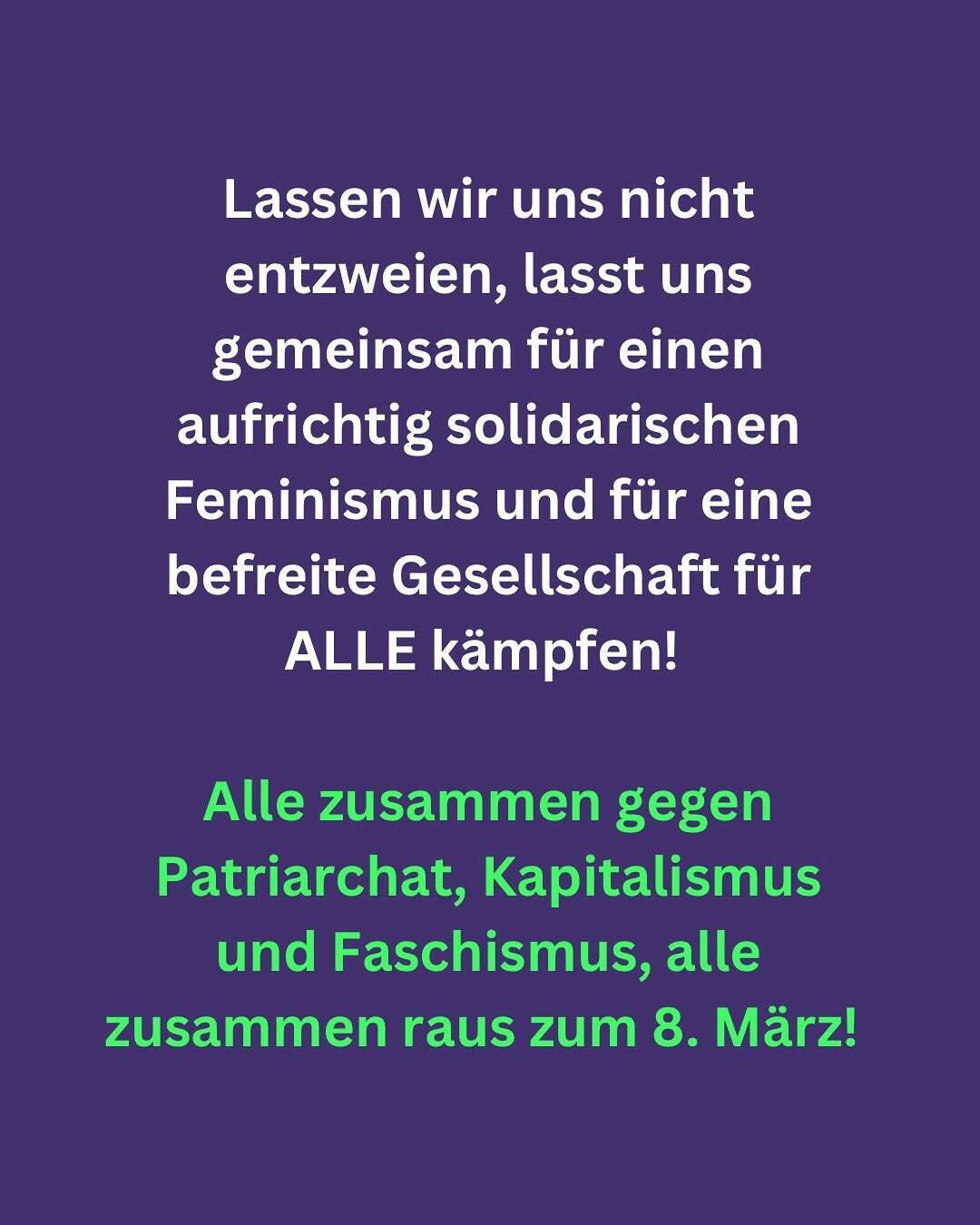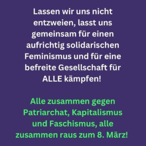 Für einen universellen, Grenzen einreissenden Feminismus und die befreite Gesellschaft für ALLE, raus zum 8. März!