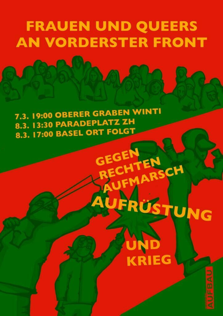 Die Welt befindet sich in einer Situation von verschärften imperialistischen Kriegen, globaler Aufrüstung und Militarisierung, reaktionären Entwicklungen, Klimakrise und Armut für die arbeitenden Klassen. Auch in der Schweiz wurden gerade 4 Milliarden für die Armee gesprochen – dies bedeutet sparen in den Bereichen Soziales, Umwelt, Bildung und öffentlicher Verkehr.