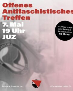 Wenn du Teil des Offenen Antifaschistischen Treffen sein möchtest, dann komm einfach vorbei und lerne andere AntifaschistInnen kennen, informiere dich über gemeinsame regionale und überregionale Aktionen und gestalte diese mit.