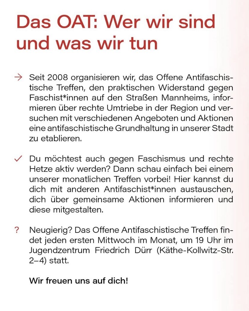 Am 8. Mai treffen wir uns vor dem Hauptfriedhof in Mannheim, um gemeinsam mit der VVN-BdA der Opfer des Nationalsozialismus zu gedenken.