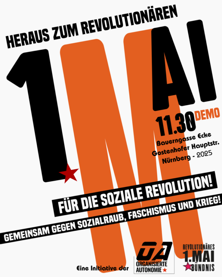 Der revolutionäre 1. Mai wird von Gruppen organisiert, die den Kampf um Gegenmacht aufgenommen haben. Die auch am 2. Mai weiter machen und für dieses Ziel arbeiten. Viele der Organisationen haben einen Infotisch auf dem internationalistischen Straßenfest im Anschluss an die Demonstration. Hier kannst du die Organisationen kennenlernen, die in Nürnberg revolutionär arbeiten.