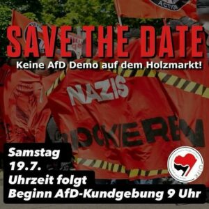 Am 19.07. will die AfD zum ersten Mal eine Demonstration in Tübingen veranstalten. Das Motto der Demo: „Schwarz, Rot, Gold ist bunt genug“. Es gab & gibt in Tübingen keinen Platz für die rassistische, queerfeindliche und Arbeiter:innen feindliche Hetze der AfD.