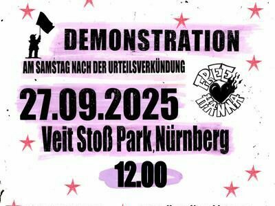 Um noch einmal alle Unsicherheiten zu beseitigen: Das Urteil in Hannas Prozess wird am 26. September gesprochen, Am Samstag drauf – also am 27.9. – gehen wir in Nürnberg auf die Straße. Es wird überregional mobilisiert. Wir treffen uns um 12 Uhr am Veit-Stoß-Platz, machen unsere Demo und spucken danach dem geplanten Aufmarsch von Gemeinsam für Deutschland gemeinsam ordentlich in die Suppe. Kommt zahlreich!