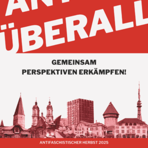 Am Samstag 15. November nehmen wir uns gemeinsam die Strasse für eine entschlossene antifaschistische Demo. Bringen wir die Vielfalt unserer antifaschistischen Kämpfe in einem kollektiven Moment der Stärke zusammen. Zeigen wir, dass wir viele sind. Zeigen wir, dass wir mehr sind!