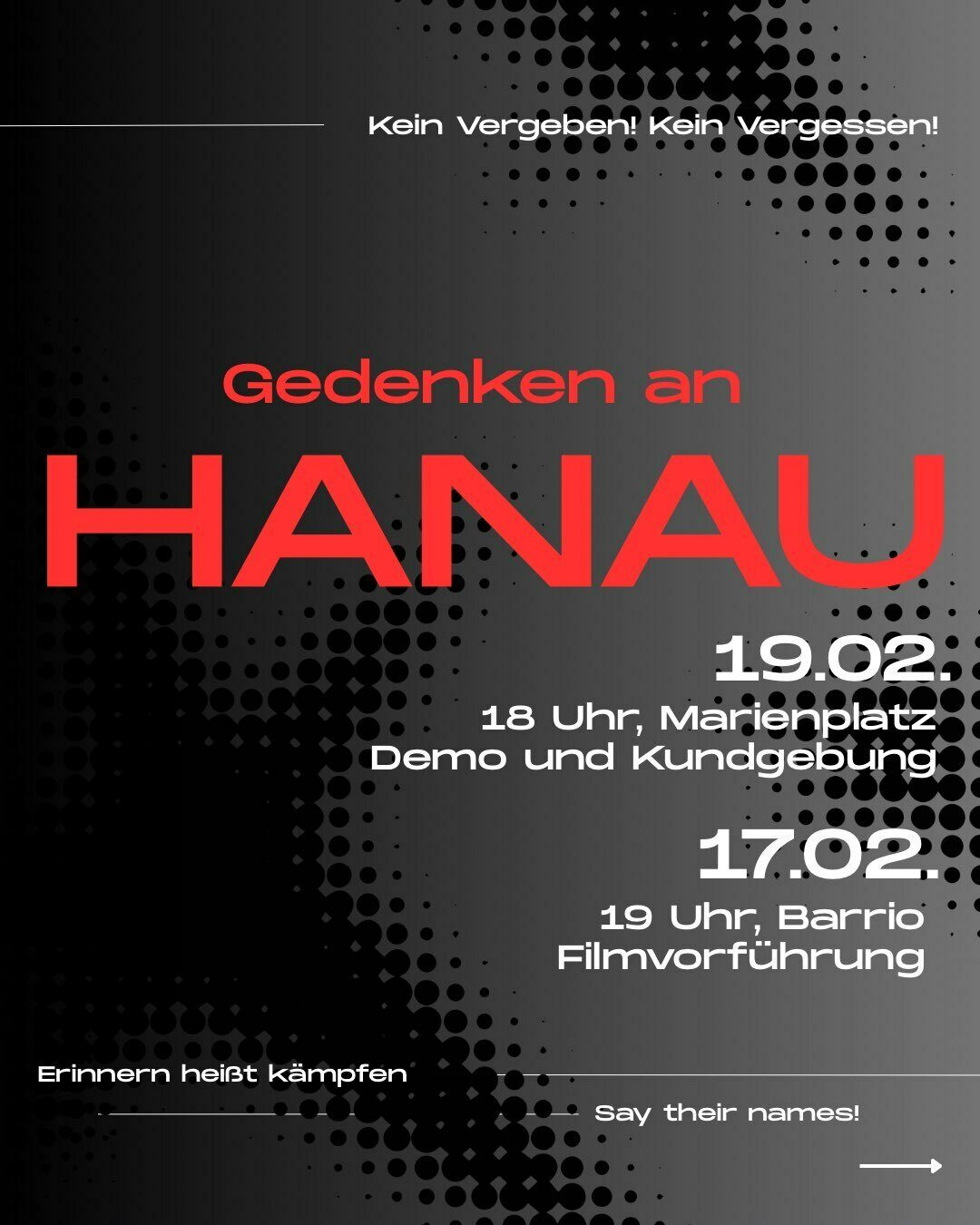 Und kommt anschließend Alle am 19.02.2026 um 18 Uhr zum Marienplatz zu unserer kämpferischen Demo, mit anschließendem Gedenken an die Opfer von Hanau.