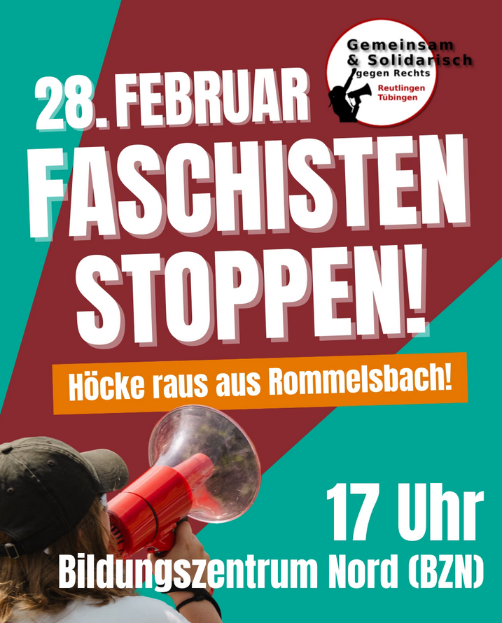 Am 28.02. lädt die Reutlinger AfD das Gesicht ihres faschistischen Flügels nach Reutlingen-Rommelsbach ein: Björn Höcke. Und mit ihm kommen: Holocaustverharmlosung, offen faschistische Rhetorik, Remigration.