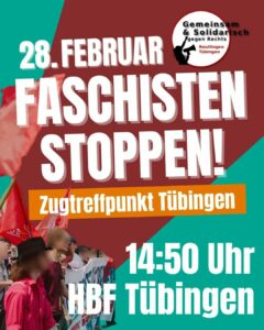 Dafür ist weder in Reutlingen noch in Rommelsbach oder sonst wo Platz – also kommt alle zur Kundgebung, bringt Schilder mit und lasst uns lautstark protestieren!