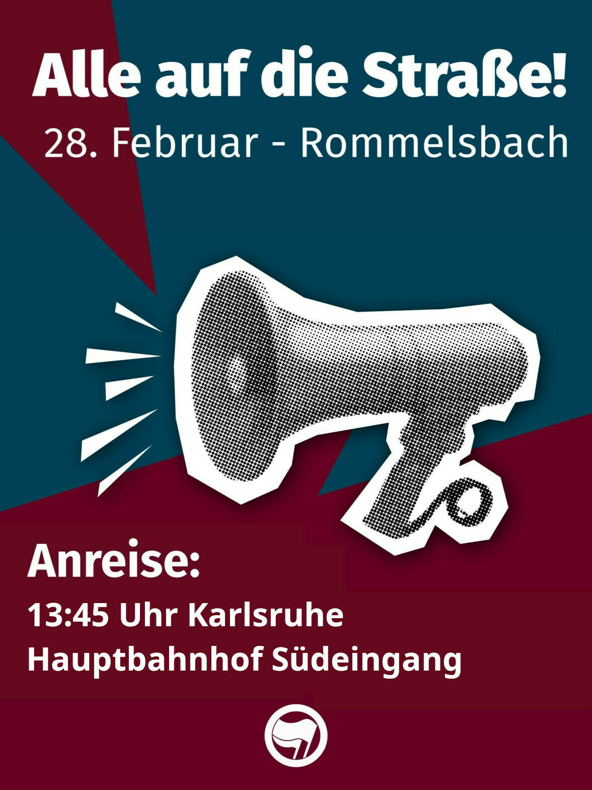 Wir folgen dem Aufruf der Antifaschistischen Aktion Süd und fahren am 28.02.2026 zusammen nach Rommelsbach: