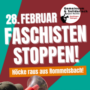 In Rommelsbach bei Reutlingen plant die örtliche AfD am 28. Februar 2026 eine Wahlkampfveranstaltung mit Björn Höcke. Deshalb werden die Proteste dagegen eine zentrale Mobilisierung für die antifaschistische Bewegung im Südwesten.